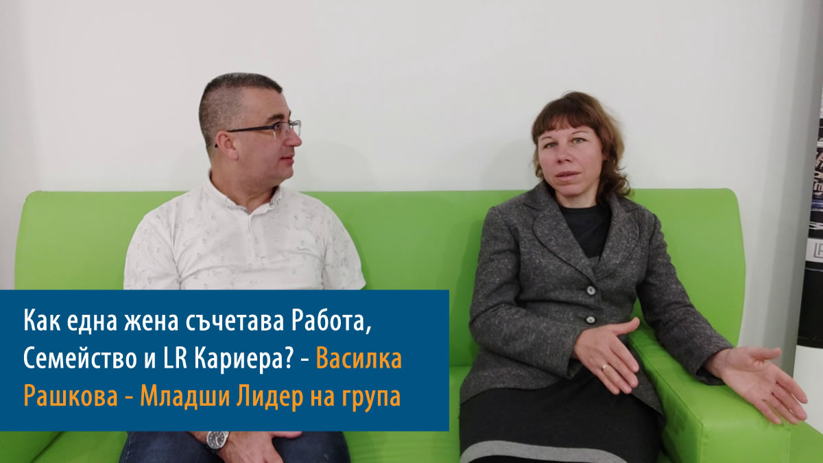 Василка Рашкова от София е майка на две деца, съпруга и домакиня, работеща в частния сектор ежедневно от 8:30 до 17:30. Пред камерата тя разказва как изключително умело успява да съчетава работа, семейство, задължения, удоволствия и кариера в LR.